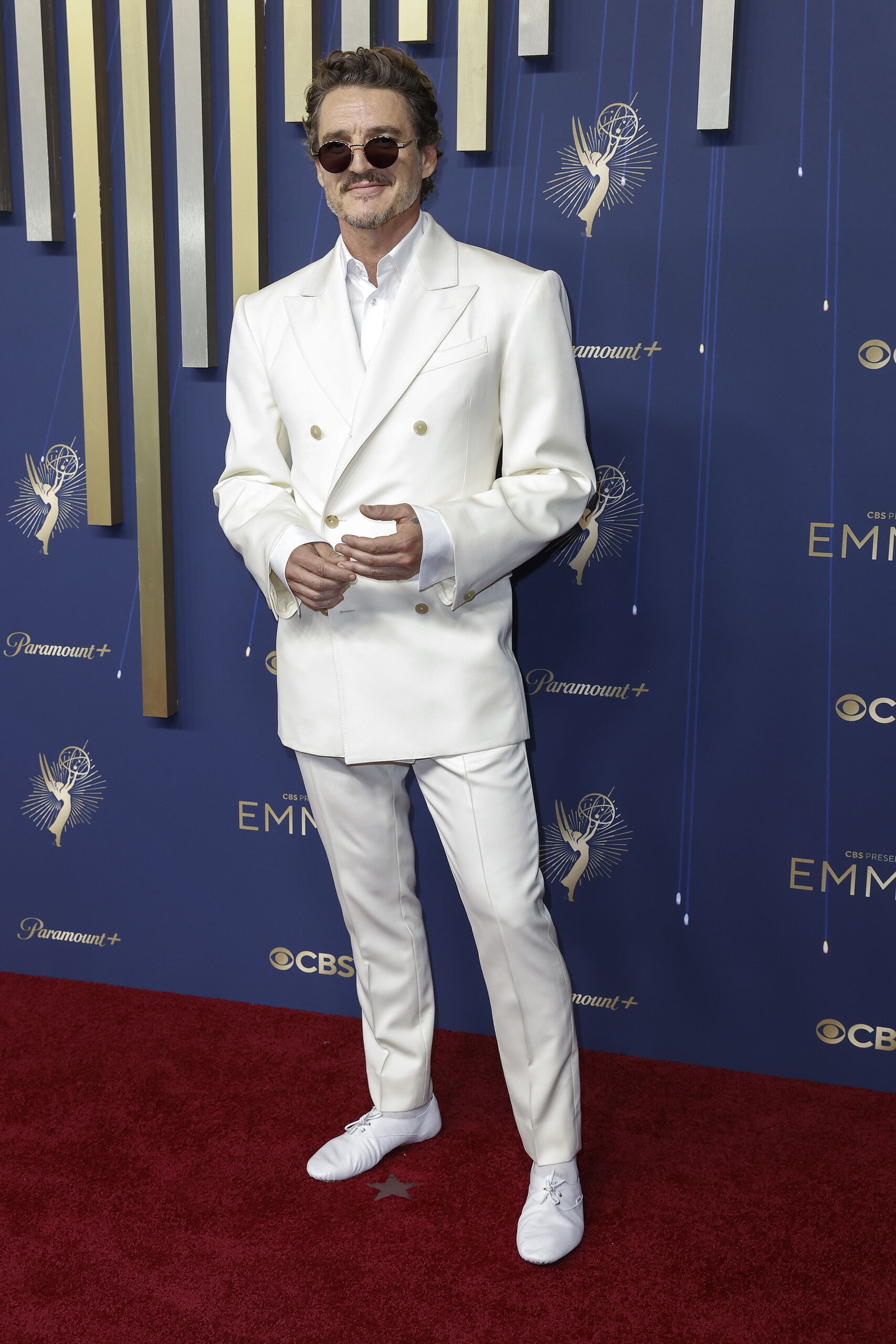 Pedro Pascal, que aspiraba al premio a mejor actor en una serie de drama por 'The Last of Us', galardón que recayó en Noah Wyle ('The Pitt'), se inclinó por el blanco con un diseño de Celine,