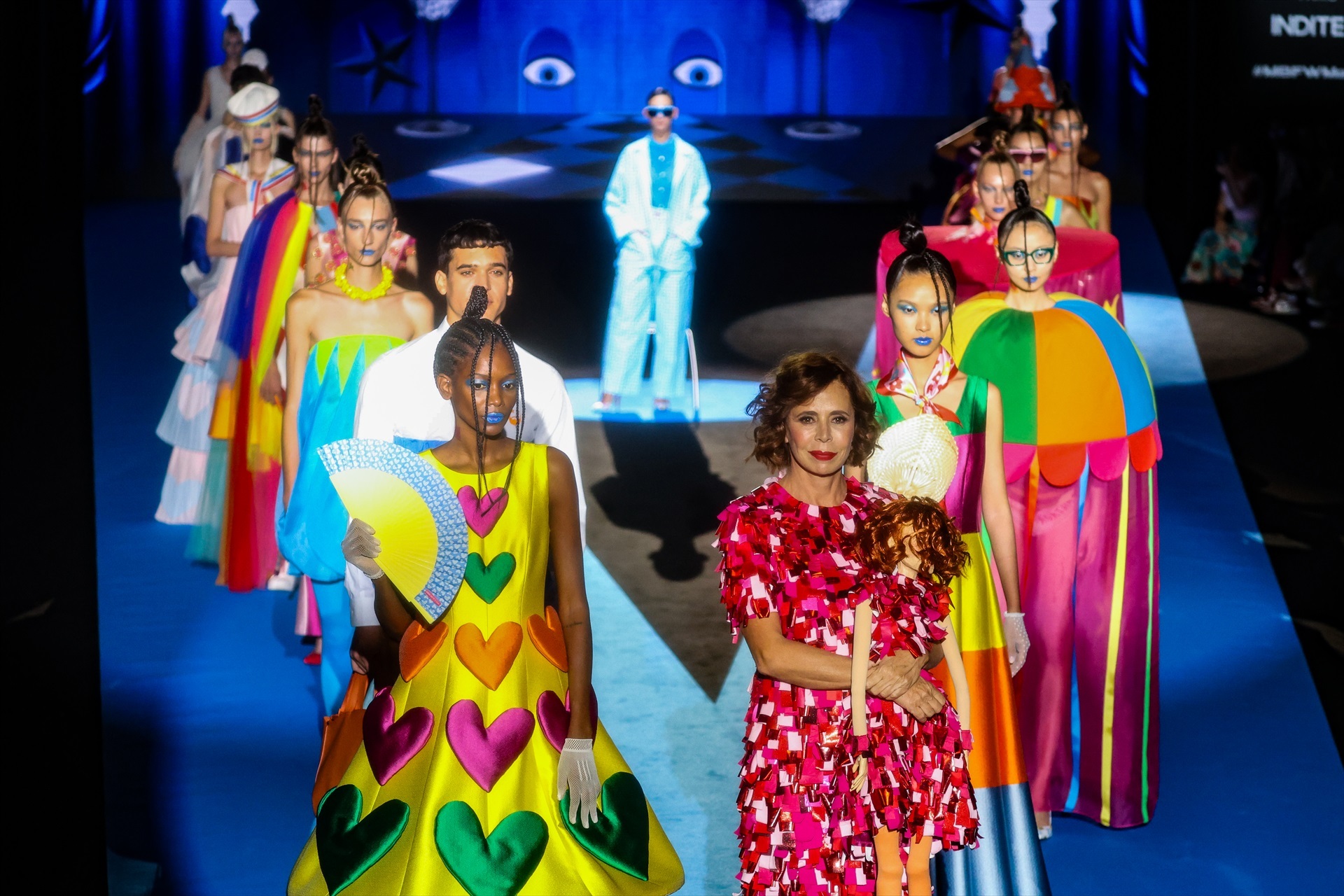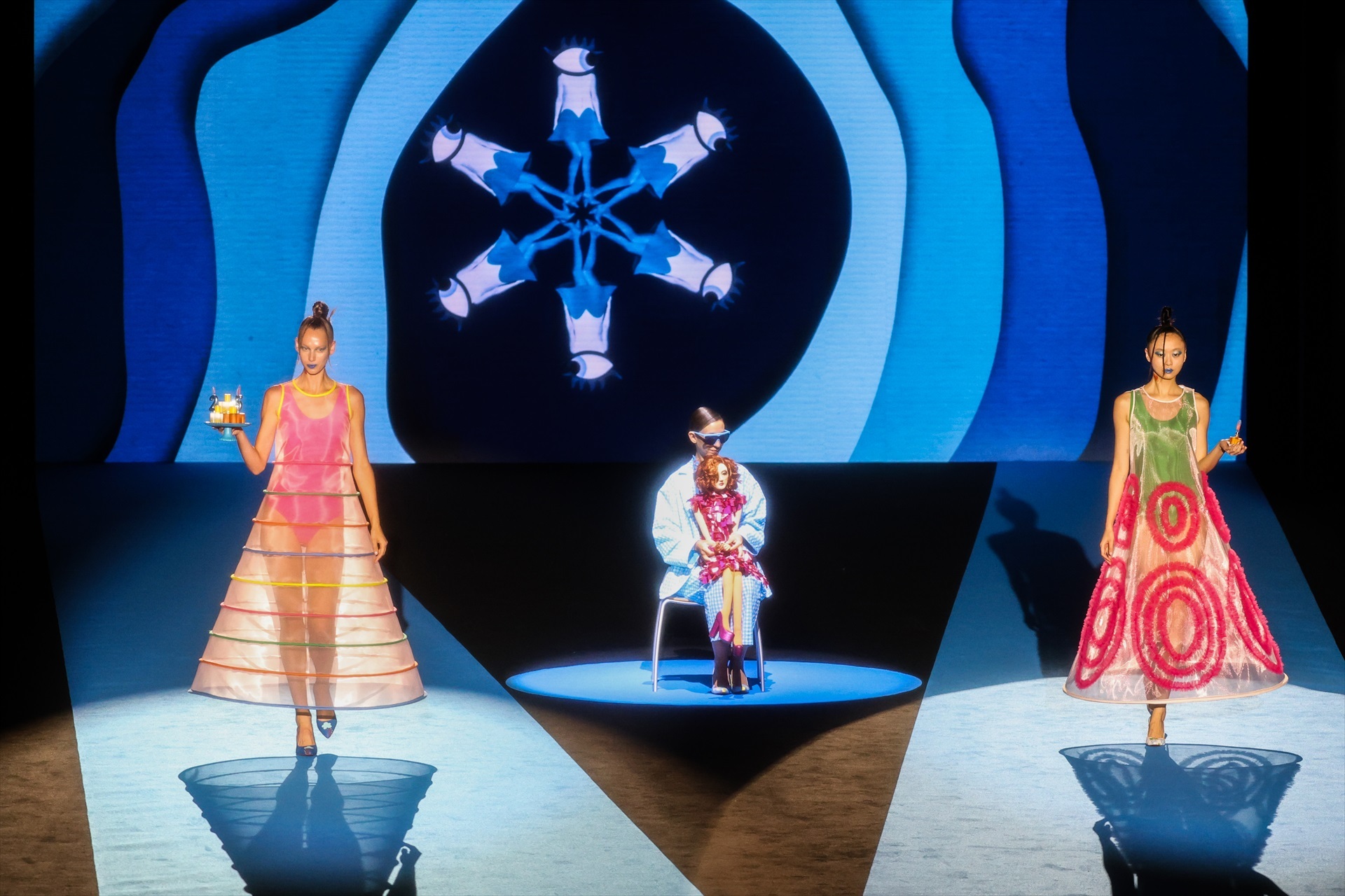 Paseando por los espacios de Mercedes-Benz Fashion Week Madrid, entre la efervescencia de la moda y el ambiente creativo que rodea cada desfile, nos encontramos con las jóvenes creadoras que estuvieron detrás de uno de los elementos más llamativos del show de Ágatha Ruiz de la Prada, las pantallas y visuales que acompañaron la colección, todos teñidos de azul.