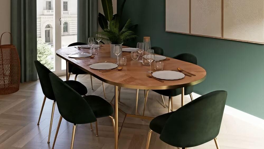 Las mesas rectangulares siguen siendo las más habituales en los hogares españoles. Su principal ventaja es la facilidad de integración en espacios alargados o comedores abiertos al salón. Al colocarse junto a una pared o centradas en la estancia, permiten aprovechar mejor los metros disponibles y organizar el mobiliario de forma equilibrada.