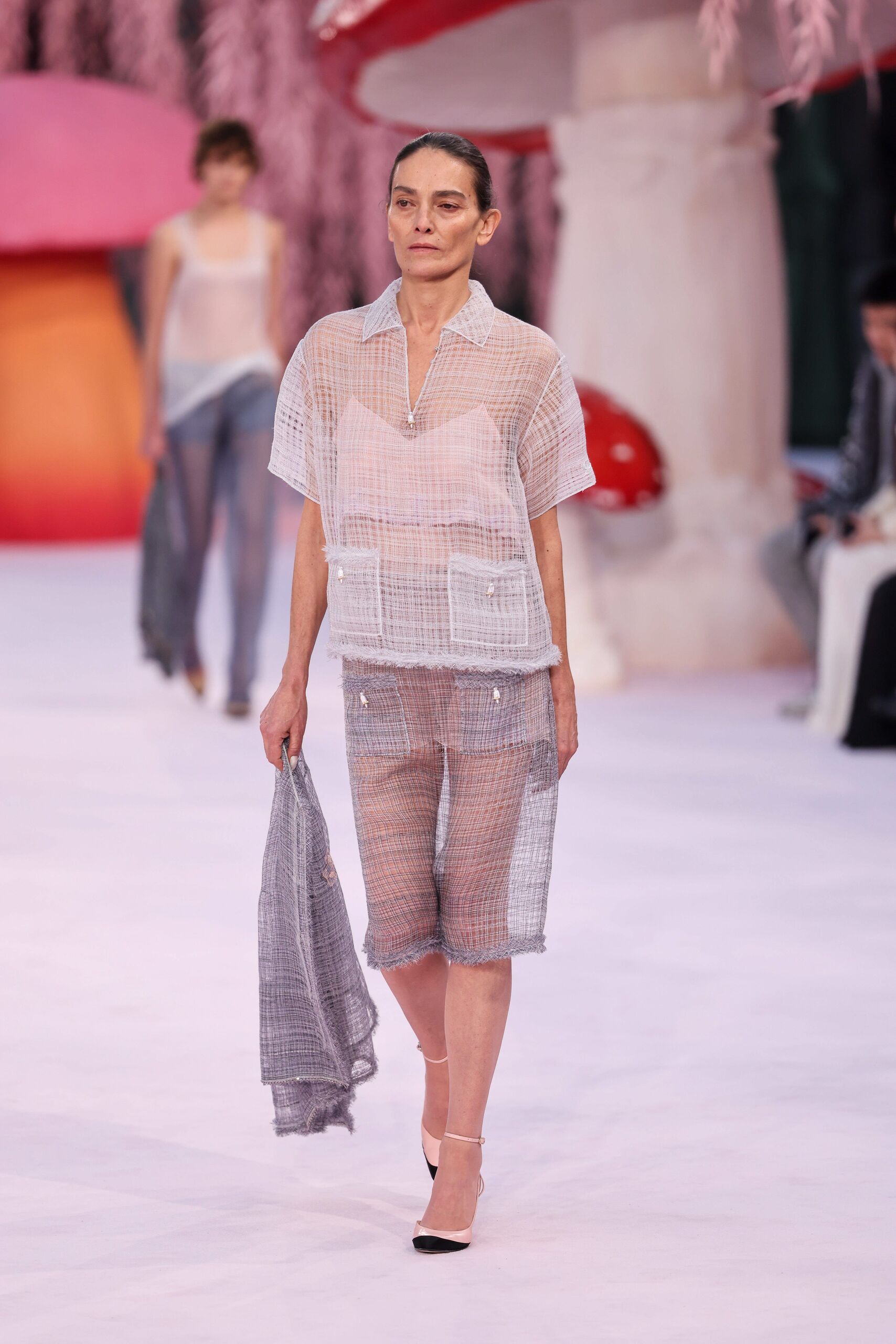 Ha sido el debut de Matthieu Blazy para Chanel y también la primera vez que Laura Ponte ha desfilado para la marca francesa en el Grand Palais de París. A sus 52 años, quién fuera una de las modelos españolas que marcó época en la década de los 90, ha sido una de las estrellas de este desfile donde la hemos visto luciendo un un etéreo conjunto de dos piezas falda y top de tweed semitransparente, zapatos bicolor con pulsera al tobillo y con una de sus señas de identidad en los últimos tiempos, prácticamente al natural y sin apenas maquillaje.