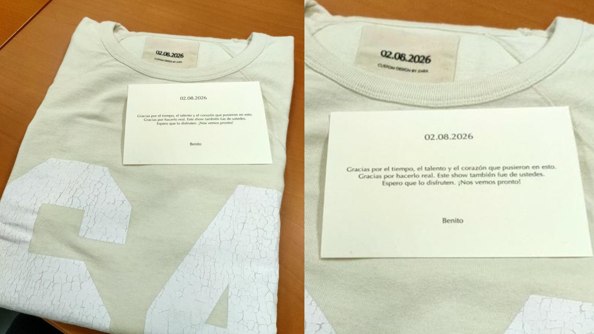La colaboración entre el show y la marca española no se quedó solo en el escenario. Hoy lunes, los trabajadores de la sede de Inditex en el polígono de Sabón, en Arteixo, se encontraron con una sorpresa sobre sus mesas: una camiseta blanca idéntica a la que Bad Bunny lució en la Super Bowl y una pequeña nota de agradecimiento: