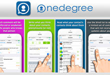 Pantallazos de la innovadora aplicación | Onedegree Onedegree, una aplicación para hacer comentarios de tus contactos de forma anónima Juanjo Alonso Esta aplicación te muestra la reputación de tus contactos basándose en la opinión de la gente que los conoce, una opinión que puede ser anónima.