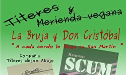 Cartel de la obra 'La Bruja y Don Cristóbal' | Títeres desde abajo Merienda titiritera Miguel del Pino No todos pueden comer sin matar, sólo unos cuantos privilegiados. ¿Es eso progresista?