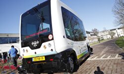 Vista frontal del vehículo. | Wepod Holanda prueba el primer autobús eléctrico sin conductor J. Romero