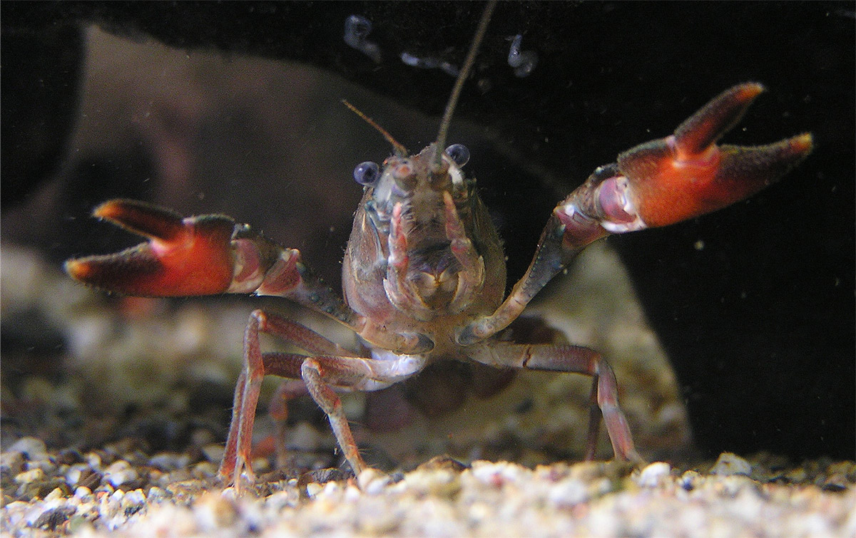 En España, P. clarkii ha desplazado al cangrejo de río autóctono (Austropotamobius pallipes lusitanicus) en casi todos los cursos de agua, quedando este sólo en los cursos más altos donde al agua es más fría de ríos de Castilla y León, País Vasco, La Rioja y otras regiones del norte, por lo que se le considera una especie invasiva.