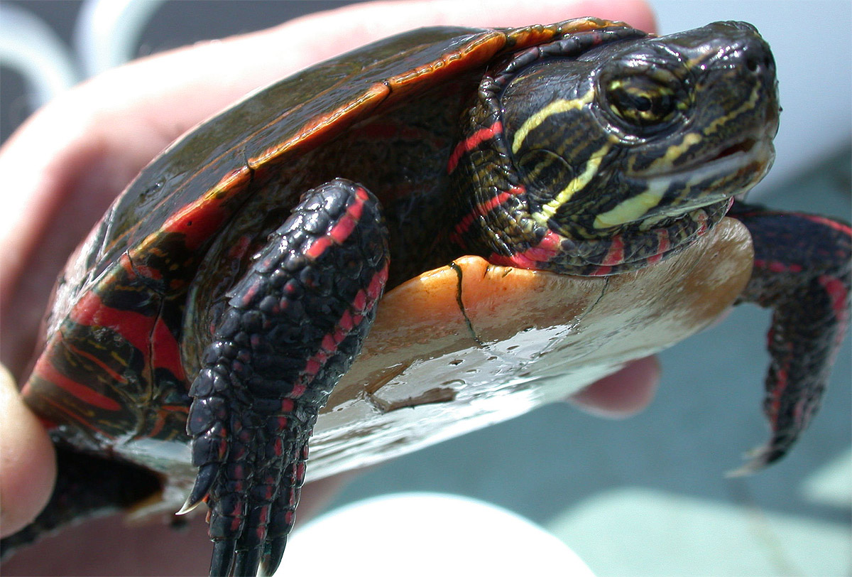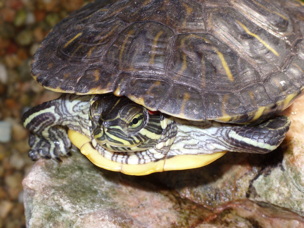 Originaria de Norteamérica, ha sido introducida como mascota. Junto a la tortuga pintada, ha menguado la población de los galápagos autóctonos españoles: el común y el leproso.