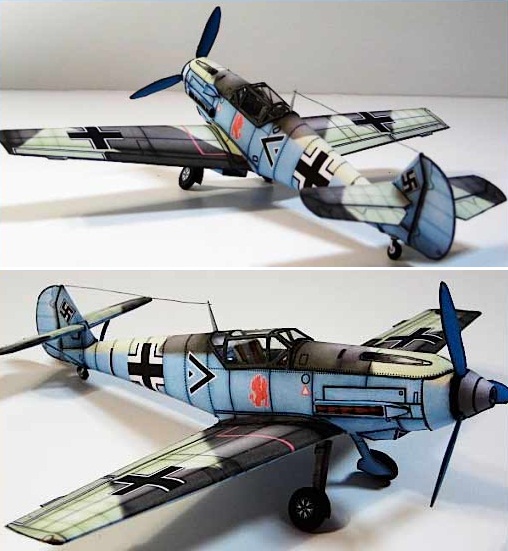 Mal que pese a aviones míticos como el Spitfire, fue el alemán Messerschmitt-Me109 el avión que más aparatos enemigos echó abajo durante la Segunda Guerra Mundial. Este modelo, como todos los de Fiddlers Green, no vuela; es un recortable de los cientos que se pueden comprar en esta página. Pero es bonito hasta decir basta.