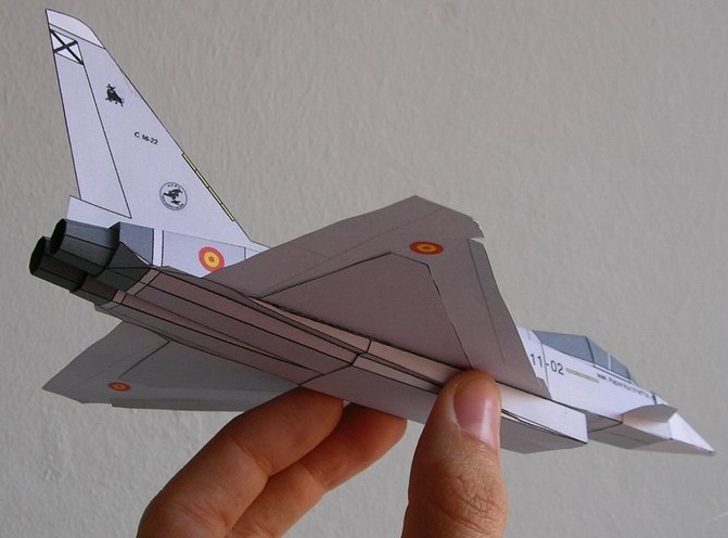 Una pequeña empresa se dedica a modelar en papel famosos aviones militares y venderlos en formato e-book por diez dólares la unidad. Este modelo de Eurofighter español se supone que es fácil: basta con 4 horas de trabajo. Y vuela.