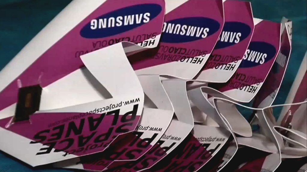Para promocionar la resistencia de sus tarjetas de memoria SD, Samsung lanzó desde el espacio con un globo aerostático 100 aviones de papel con sus tarjetas incorporadas. Pocas fueron encontradas aquí abajo, pero al menos una de ellas funcionaba perfectamente y no perdió sus datos.