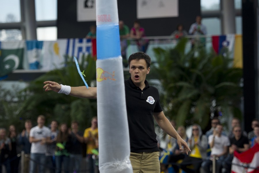 Al contrario que las otras dos pruebas, los aviones acrobáticos pueden construirse con tijeras y pegamento. Compartieron el primer lugar con cinco dieces el norteamericano Ryan Naccarato y el polaco Tomasz Chodryra (en la foto), cuyo avión dio una vuelta alrededor de la columna para regresar mansamente a sus manos.