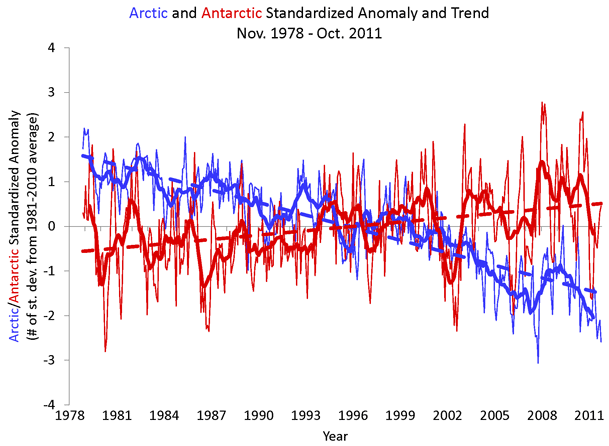 Además, la fijación con el hielo en el Océano Ártico contrasta con la escasa atención que recibe la cantidad de hielo del Océano Antártico, que durante los años de "cambio climático peligroso" no ha hecho sino crecer, según indica el mismo NSIDC, que mide ambas variables. El récord actual tuvo lugar en 2007, pero la tendencia sigue siendo positiva.
