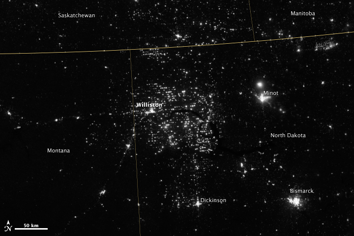 La luz en Dakota del Norte, una de las zonas menos pobladas de Estados Unidos, se debe a los pozos de petróleo.