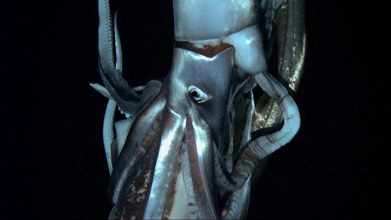 El calamar gigante vive aparentemente en profundidades entre los 400 y los 1.500 metros bajo la superficie del mar, donde la presión es muy elevada y la luz del sol prácticamente inexistente.