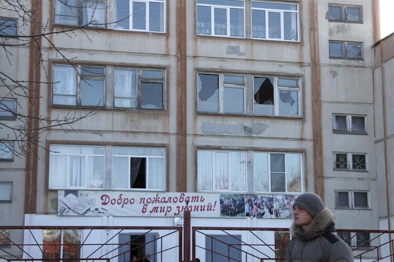 La televisión rusa muestra a uno de los heridos por el impacto de los fragmentos.