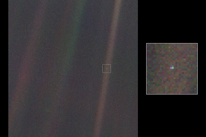 La NASA ha recordado este año a la nave Voyager 1, lanzada en 1977 y que este año se ha convertido en el artefacto humano que ha llegado más lejos en la historia aeroespacial. La imagen es de 1990. El punto de luz es la Tierra desde la nave.