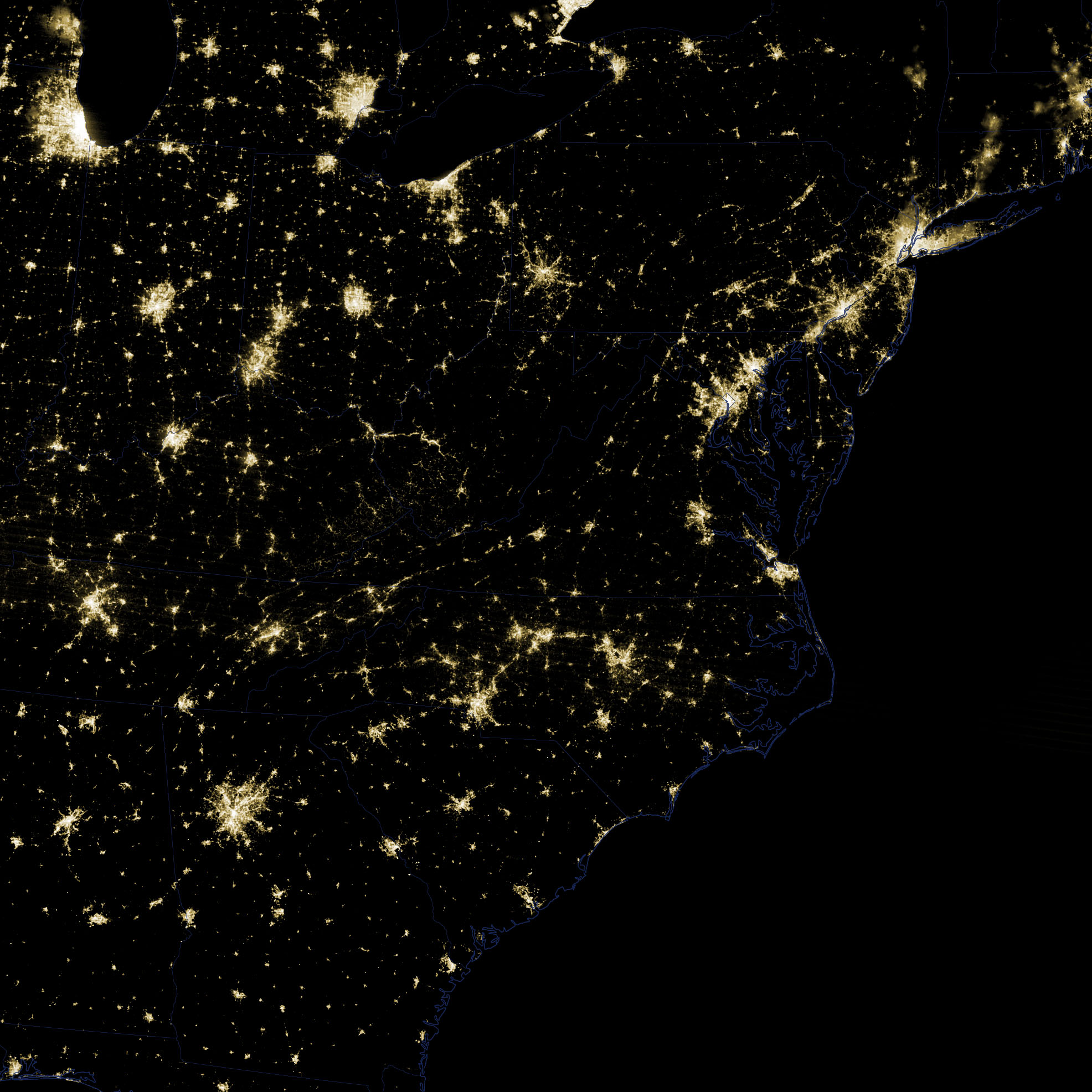 Imagen nocturna de Nueva York, Filadelfia y otras ciudades de la costa este estadounidense