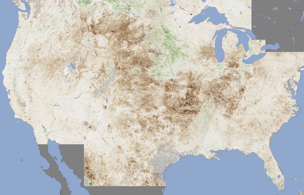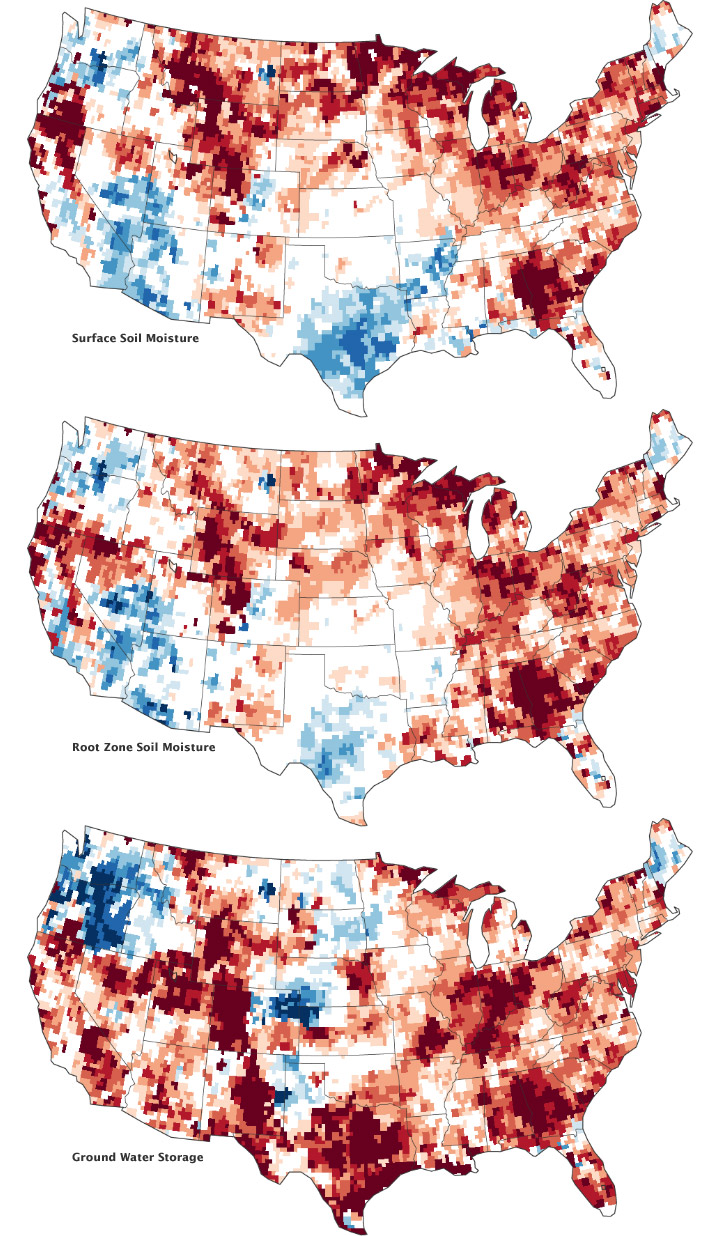 La presencia de agua en suelo estadounidense durante la sequía vivida en 2012
