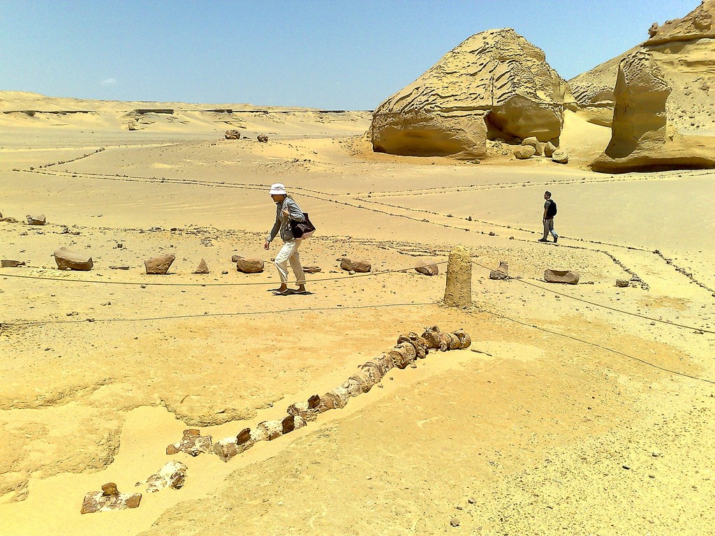 El Uadi Al Hitan (Valle de las Ballenas, en árabe), situado en el desierto occidental de Egipto, cuenta una apasionante historia de la evolución de la vida en el planeta: el paso de las ballenas de la tierra al mar. El valle, declarado Patrimonio de la Humanidad por la Unesco, posee restos fósiles de 40 millones de años de los arqueocetos, un grupo de animales ya extinto a partir del cual evolucionaron los actuales cetáceos. Las ballenas del Uadi Al Hitan, localizadas en un entorno de rocas con formas caprichosas, "se hallaban en la última fase de pérdida de sus miembros posteriores", según detalla la Unesco.