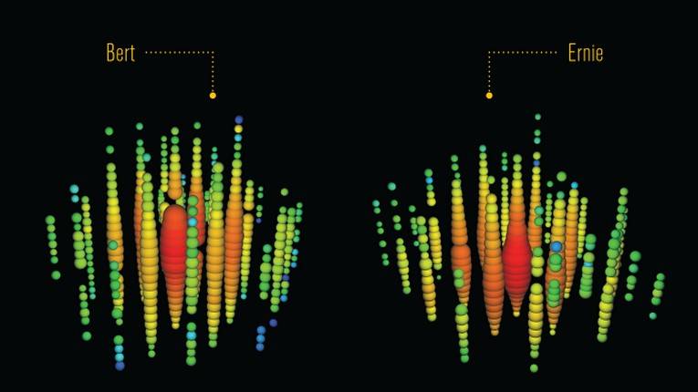 Epi y Blas (en realidad Bert y Ernie, las versiones anglosajonas de los personajes de Barrio Sésamo) quedaron retratados en esta maraña de dispositivos enterrados en el hielo. El nombre se le ocurrió a Van Santen, que no quería asignar el habitual número a dos partículas tan especiales. Una de ellas recibió el nombre de Epi (Bert), porque aterrizó en una dirección más horizontal. Blas (Ernie), el personaje de la cara alargada, llegó en una trayectoria más vertical y era ligeramente más grande. Lo curioso del asunto es que Van Sant, acostumbrado a trabajar en un campo que requiere una gran precisión, se confundió en el bautizo y asignó el nombre del teleñeco de cara alargada al neutrino más horizontal y viceversa. Para entonces, según explica el investigador, era demasiado tarde: "El nombre había calado".