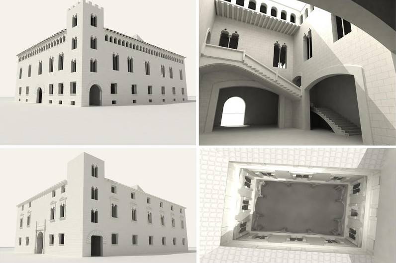 En la manzana que ocupaba el palacio en el siglo XVI se levantan hoy dos edificios. Al demoler uno de ellos en 1999 se descubrieron restos arqueológicos que también han servido de referencia para el estudio. Y las estructuras de otros palacios, como los valencianos del Almirante y En Bou o el romano Palma-Baldassini, ayudaron a aplicar el análisis deductivo para ver cómo se transformó de un palacio gótico en otro renacentista.