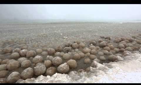 A las espectaculares imágenes de las cataratas del Niágara congeladas que dejó el temporal de frío en Estados Unidos se unió un curioso fenómeno a las orillas del lago Michigan: la acumulación en la orilla de bloques de hielo de forma esférica.