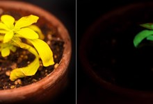 La planta Starlight Avatar a la luz del día (izquierda) y en la oscuridad (derecha). | Bioglow Usa genes de bacterias marinas Una planta transgénica que luce en la oscuridad Libertad Digital 4 La Starlight Avatar es la primera de su clase que no necesita de luz ultravioleta, productos químicos ni electricidad.