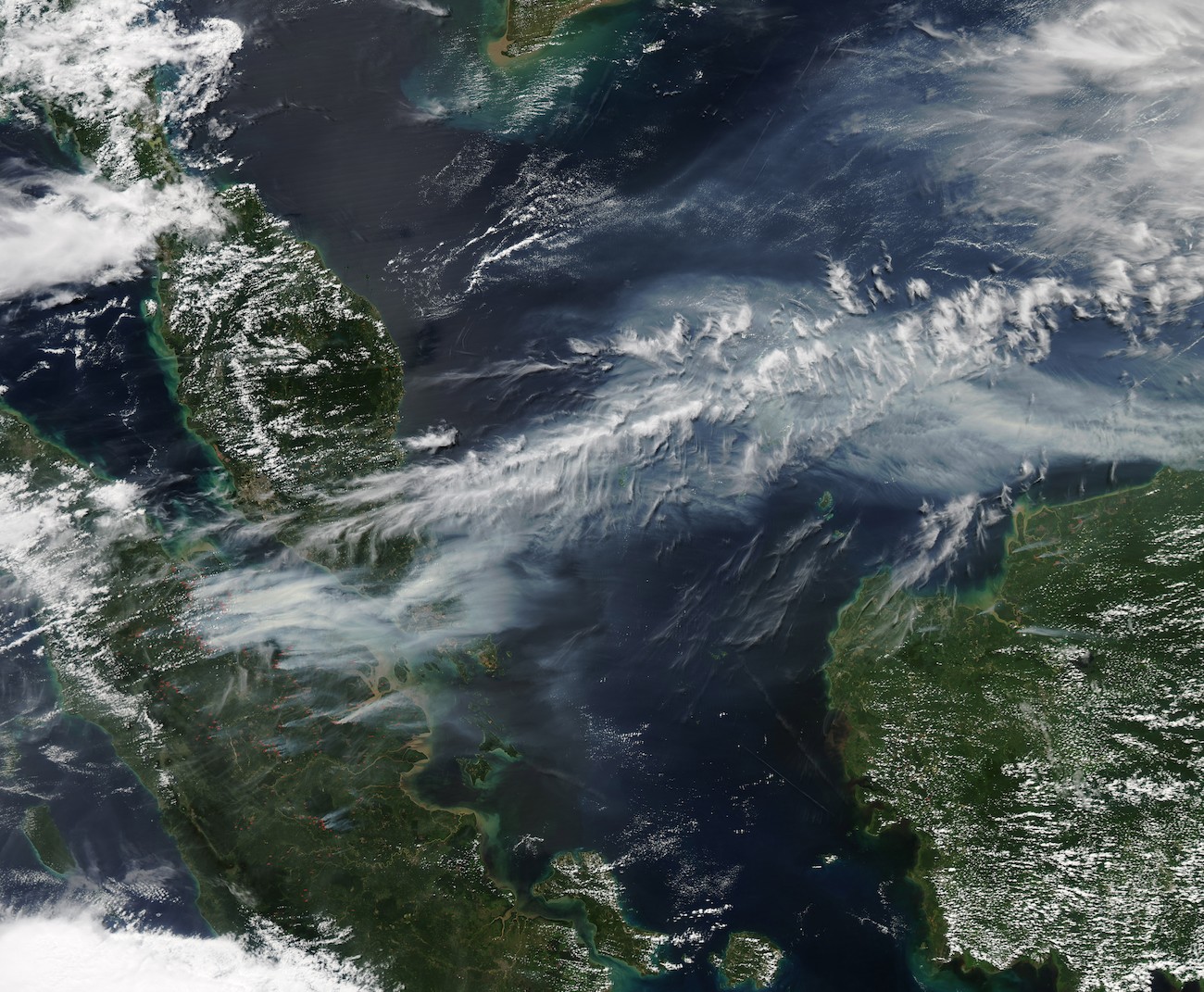 Los fuegos ilegales en Indonesia dejaron esta imagen del humo extendiéndose por la isla de Sumatra