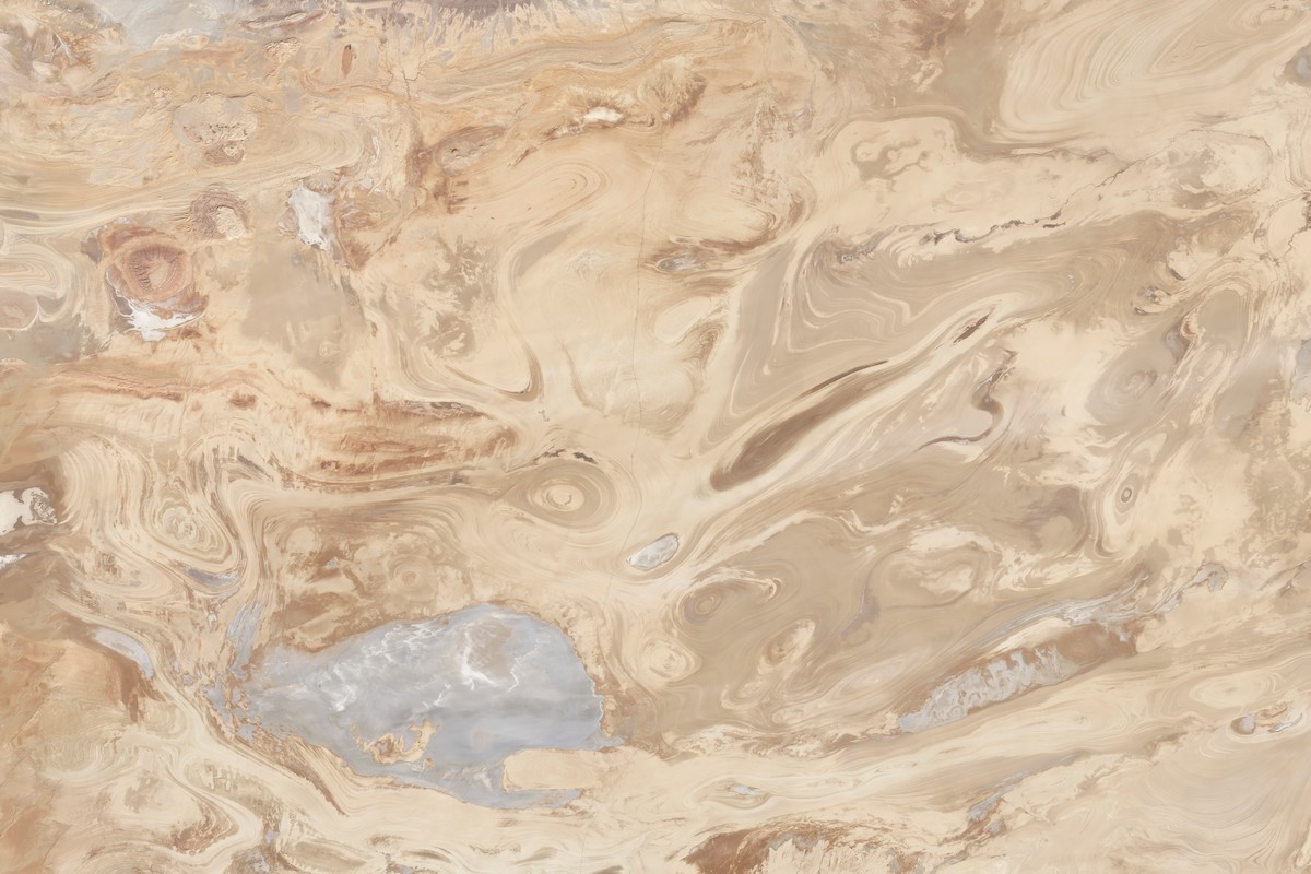 El inhóspito Gran Desierto de Sal iraní revela su historia en esta foto tomada por un satélite. Hace miles de años, la zona albergaba un mar que rodeaba la península iraní y la erosión ha dejado huellas de su remoto pasado.
