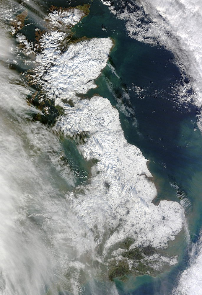 La nieve cubría en enero de 2013 la práctica totalidad de la isla de Gran Bretaña