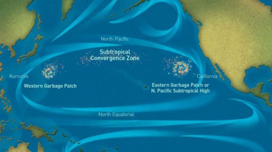 En el norte del Pacífico, se acumulan varias islas de basura procedentes de los desechos que tiraban los buques hasta que esta práctica se prohibió y los residuos llegados a través de los ríos. La isla más grande está en entre Hawai y California y está compuesta por material no biodegradable, sobre todo plásticos, acumulados gracias a la fuerza de las corrientes en esa zona. Los expertos no se ponen de acuerdo en su tamaño, pero podría ser mayor que la superficie de la península ibérica.