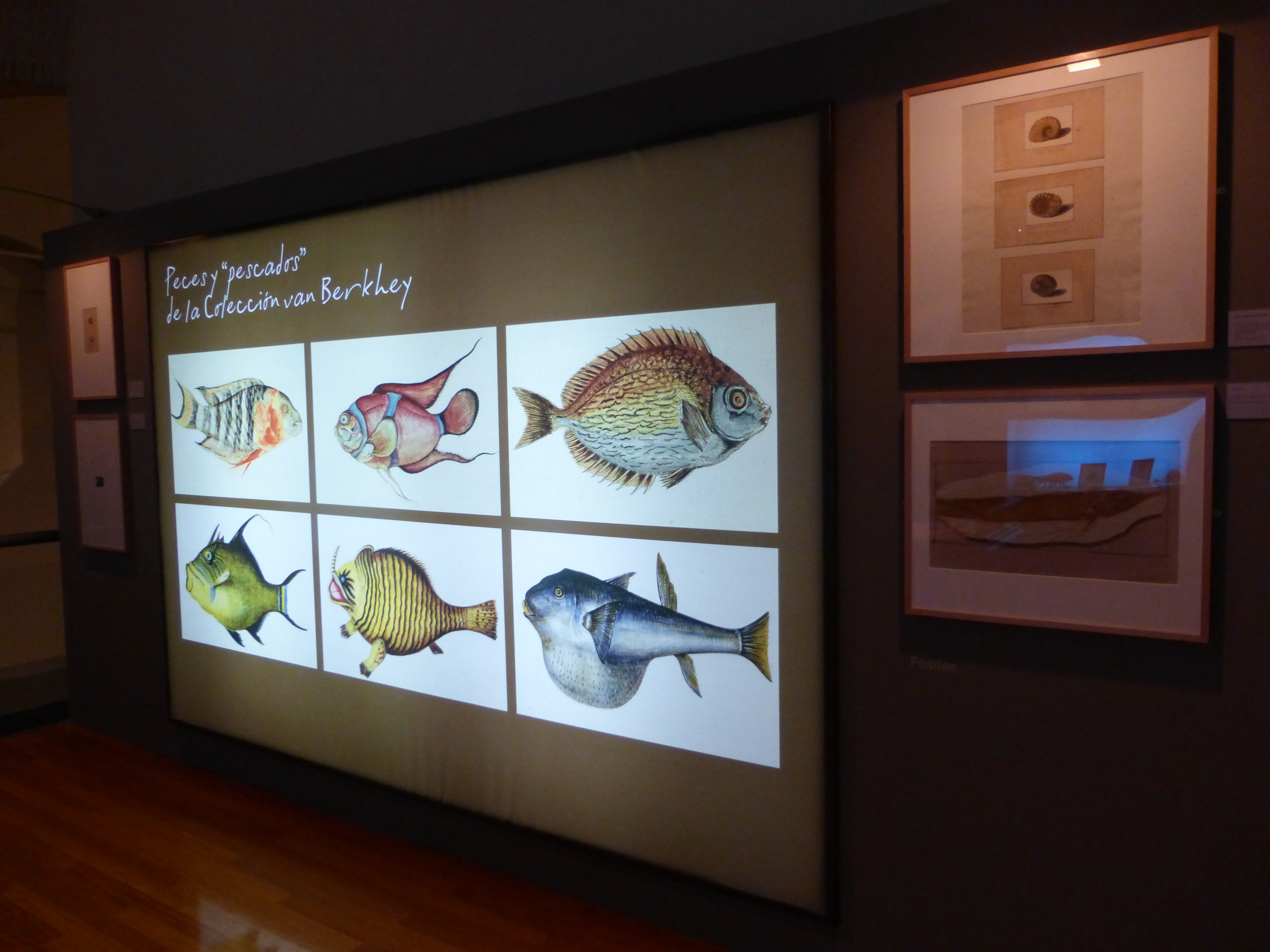 En la parte superior de la exposición destacan los grabados sobre reptiles, peces y artrópodos. Entre las técnicas de los dibujos destaca la acuarela aunque también se utiliza el grafito, el carboncillo o la tinta china.