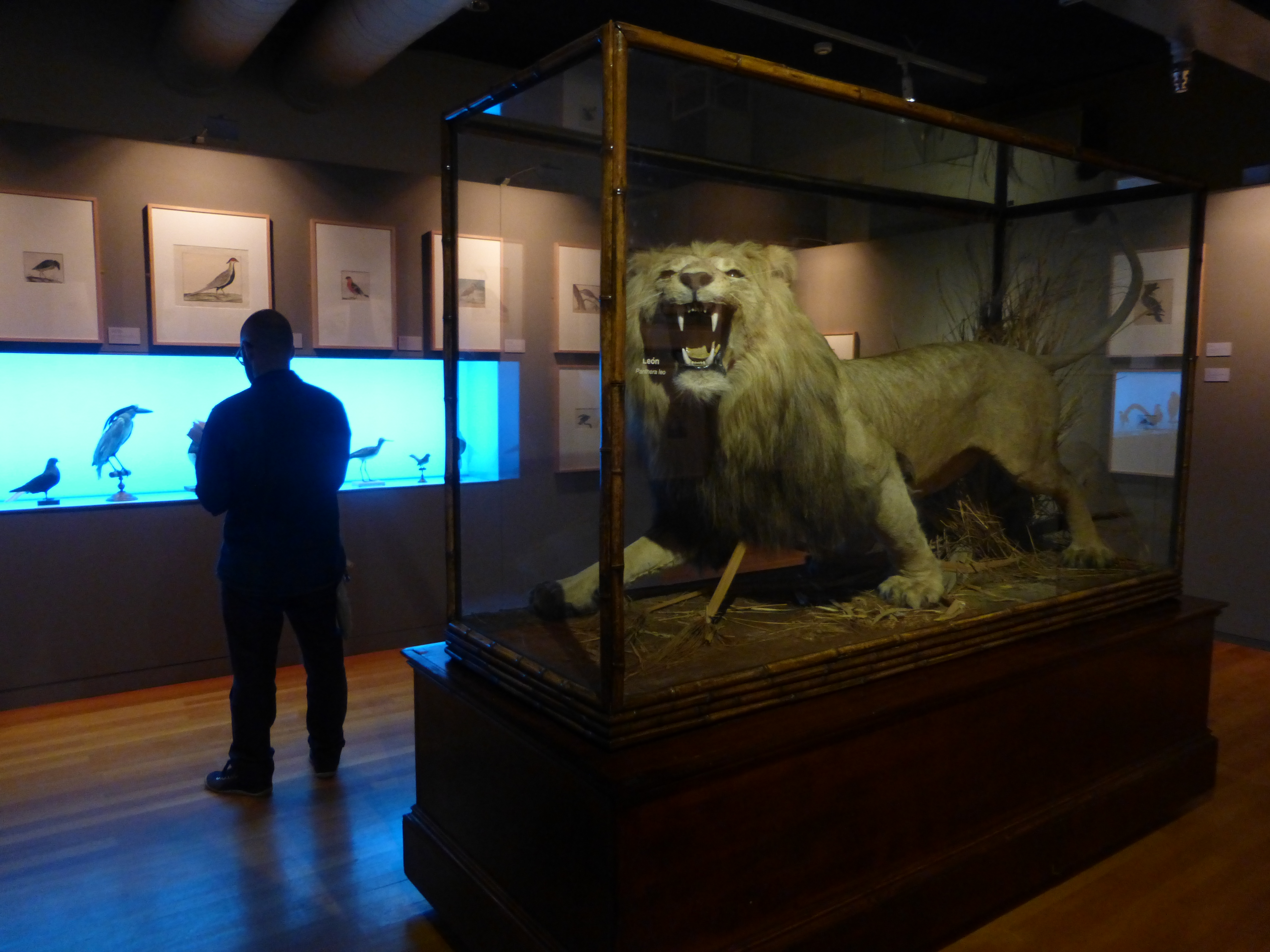 También destaca este león africano disecado, que ocupa una posición privilegiada en la exposición.