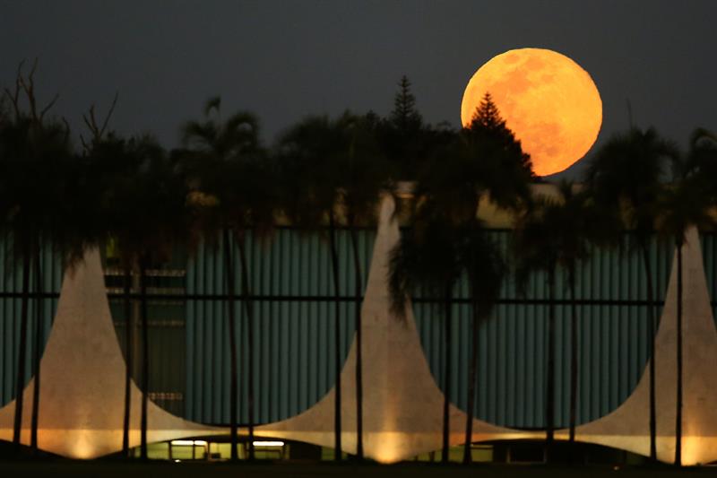 Vista de la Superluna desde el Palacio del Alvorada en Brasilia. EFE/Fernando Bizerra Jr.