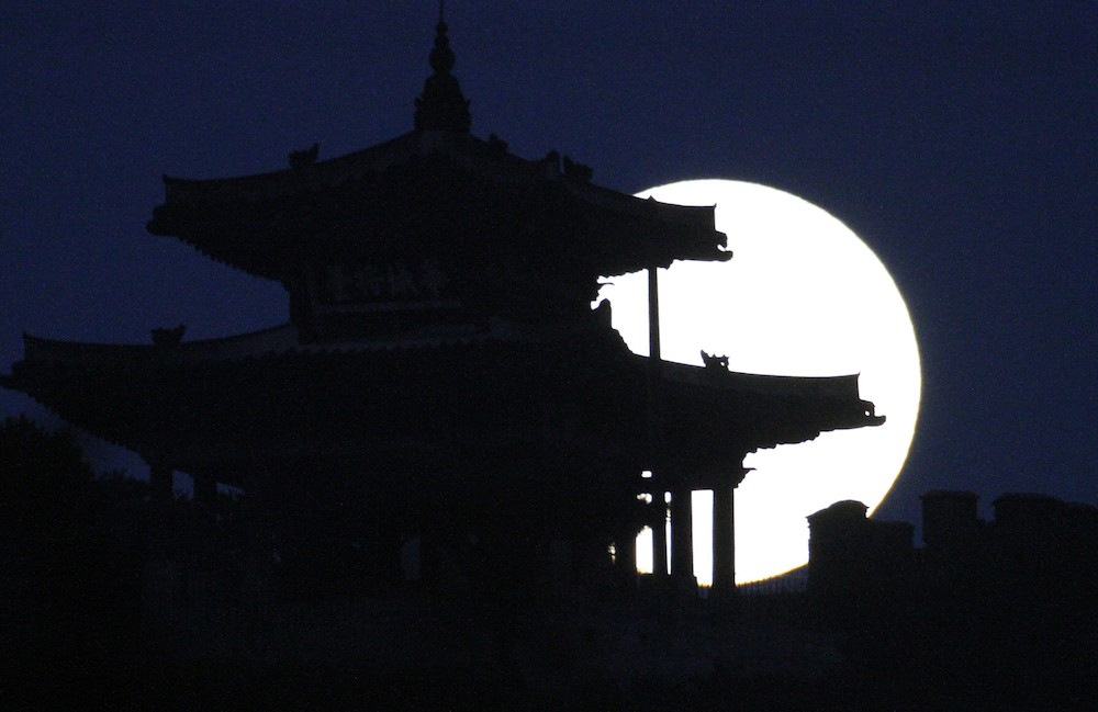 Vista de la Superluna en Hwasong, fortaleza de la ciudad de Suwon, en Corea del Sur.