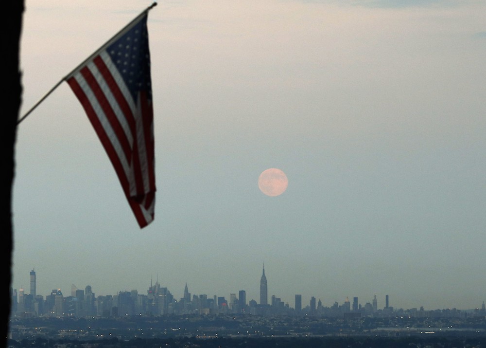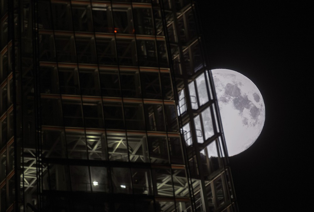 Al atardecer del domingo la súper luna podía verse en su máximo tamaño. En este caso una vista del Sistema Central.