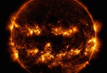 El observatorio de dinámica solar de la NASA (SDO), que sigue al sol en todo momento, captó una imagen del astro con forma de calabaza de Halloween.