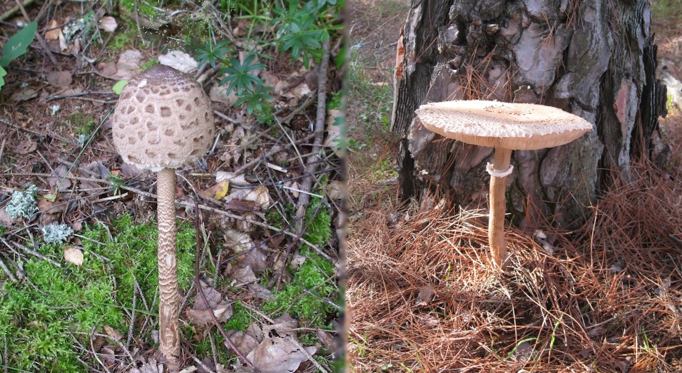 Es una de las setas más espectaculares que podemos encontrar en nuestros bosques, principalmente por su tamaño. De forma ovoide al principio y con aspecto de maza de tambor, se extiende más tarde hasta tomar la forma de un gran parasol que puede llegar a medir hasta los 30 centímetros de diámetro y alcanzar casi medio metro de altura. Tiene un mamelón central más oscuro, protuberante y obtuso. El color varía de parduzco claro a grisáceo con escamas oscuras casi concéntricas, con una más ancha que cubre el mamelón central. Las escamas pertenecen al mismo sombrero, por lo que no es fácil eliminarlas. Sus láminas son anchas, libres, apretadas y desiguales, primero de color blanco o amarillento y después se oscurecen por las aristas. En la parte superior del tallo -que puede llegar a los 40 centímetros- tiene un anillo. La carne es blanca, blanda, tierna y libera un olor harinoso agradable y sabor a nuez Es un excelente comestible mejor cuando es joven (maza de tambor). Sólo se aprovecha su sombrero, pues el pie es fibroso y duro. Esta seta es muy atractiva para los insectos, por lo que se debe tener un especial cuidado en la limpieza para eliminar los posibles parásitos que contengan, más aún en los ejemplares más viejos. Los sombreros abiertos pueden cocinarse como escalopes, empanados y fritos. También puede hacerse a la plancha. De cualquier forma tiene un exquisito sabor que recuerda a la nuez. Las lepiotas son muy peligrosas cuando tienen un tamaño inferior a los 10 centímetros de diámetro, ya que se confunde con la Lepiota Helveloa, que resulta mortal. También puede confundirse con con la Amanita Pantherina