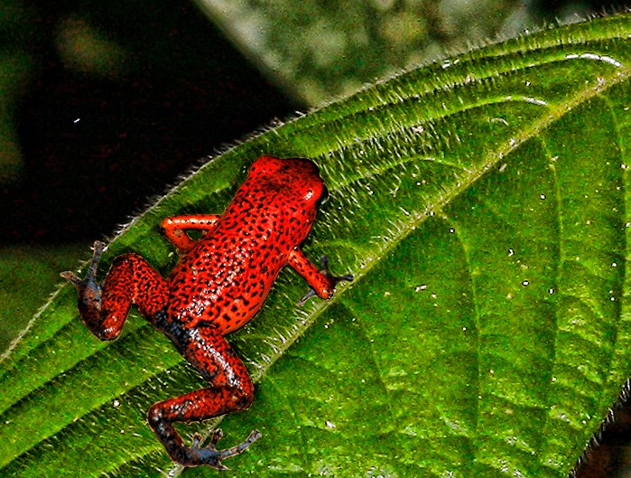 La rana dardo ha sido calificada en numerosas listas como el animal con el veneno más potente del mundo. Se le conoce como "rana punta de flecha" porque los nativos mojaban la punta de una flecha con su veneno a la hora de cazar para matar al animal rápidamente. También es llamada Rana del Dardo Dorado. Se trata de una especie única que mide unos 5 centímetros y tiene veneno suficiente como para matar a diez hombres adultos. Este anfibio de colores brillantes es uno de los más grandes de entre más de 100 especies de ranas dardo venenosas: la media de longitud es dos centímetros y medio. Viven en una pequeña área de la selva tropical de la costa del Pacífico de Colombia. El color llamativo está diseñado para disuadir a los depredadores se trata de una táctica llamada coloración aposemática. La investigación médica ha tratado de encontrar usos medicinales del veneno de la rana dardo dorada. Según algunos expertos los científicos han logrado sintentizar uno de sus componentes para que actúe como un potente analgésico