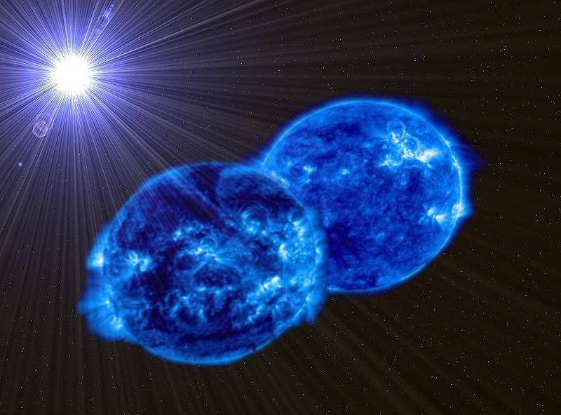 "La curva de luz –comenta Sergio Simón, investigador del IAC y uno de los autores del artículo– nos muestra que el periodo orbital del sistema es de tan solo 1,2 días. Dado el gran tamaño de las estrellas, tienen que estar enormemente cerca para poder dar una vuelta completa en tan poco tiempo. Las estrellas se desplazan a una velocidad superior al millón de kilómetros por hora. Pero, al estar tan cerca, las fuerzas de marea que se establecen entre ellas las fuerzan a rotar sobre sí mismas con el mismo periodo, es decir, cada estrella gira sobre sí misma en poco más de un día, mientras que el Sol, que es mucho más pequeño, gira sobre sí mismo una vez cada 26 días".