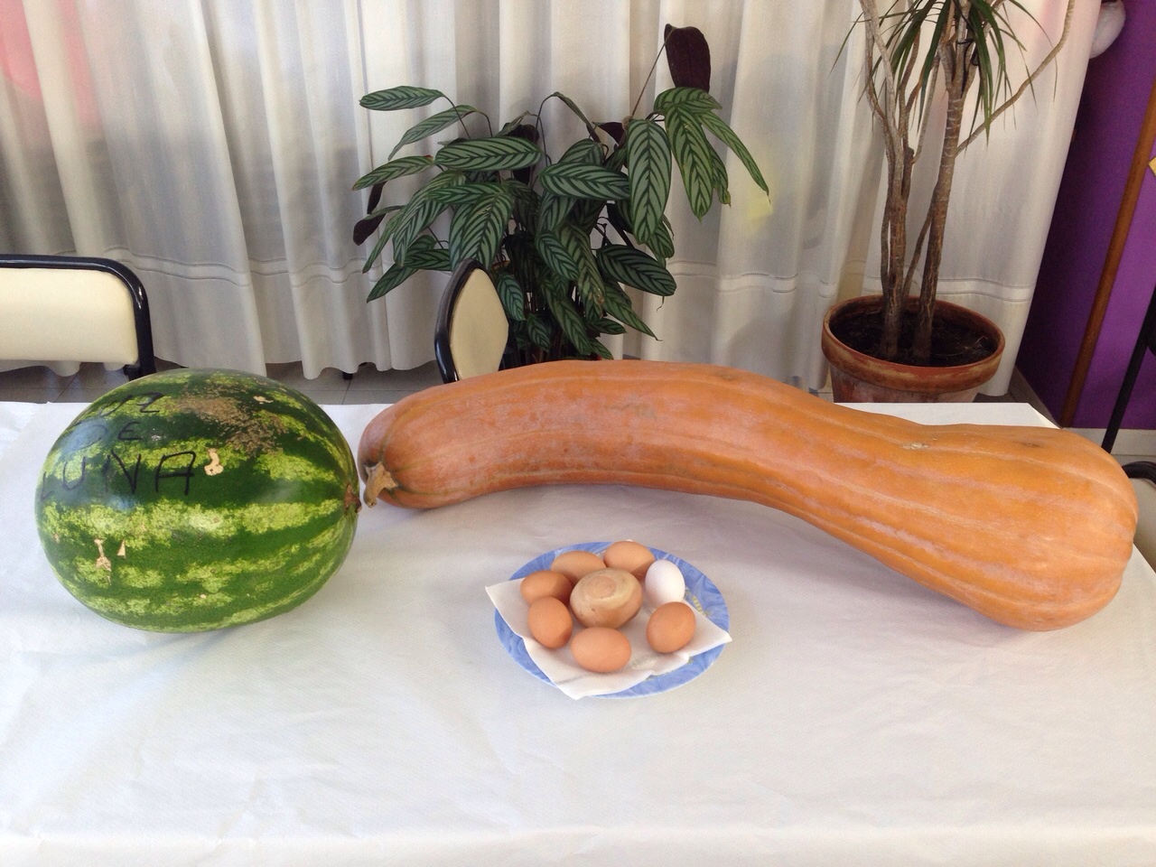 En el restaurante Luz de Luna está expuesto el huevo junto a una calabaza y una sandía de gran tamaño.