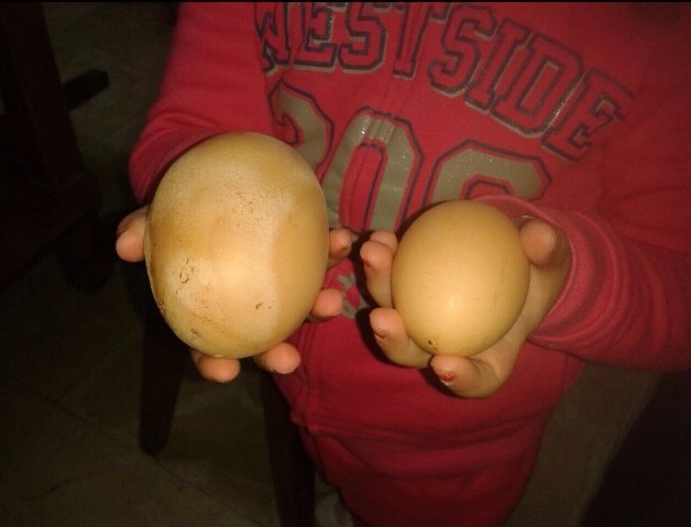 Un niño sujeta el huevo gigante y uno normal | J. Cores