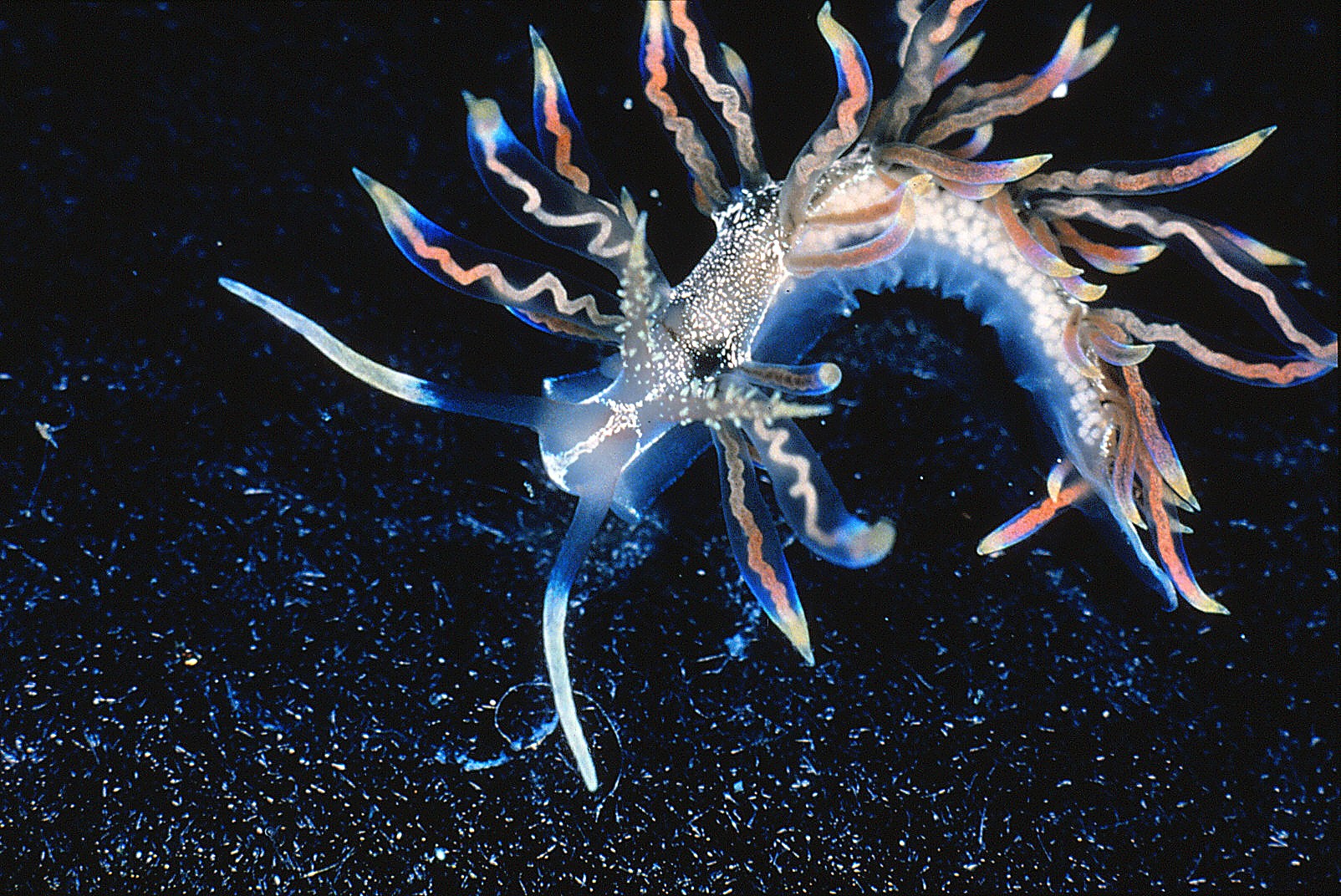 Está en la lista por forma y colorido. Está a medio camino entre las babosas de mar que se alimentan de medusas y las que se alimentan de corales.