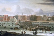 Una 'frost fair' que tuvo lugar en un Támesis congelado durante el invierno de 1683-84 durante la Pequeña Edad de Hielo. | Abraham Hondius