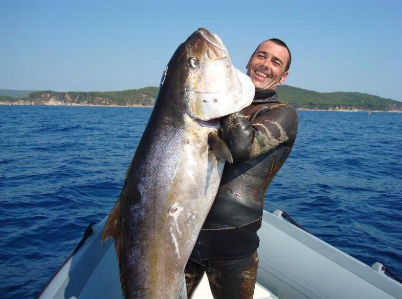 Al igual que el palometón, es uno de los grandes animales con los que compartimos baño. Puede alcanzar los dos metros y superar los 50 kilos. Este ejemplar fue capturado después de mucho esfuerzo por el conocido pescador submarino Toni Palamós.