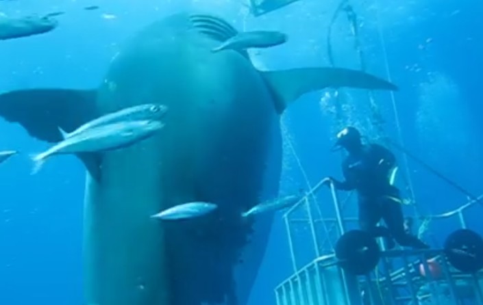Se trataría del "tiburón más grande jamás filmado", es una hembra que se llama Deep Blue y los investigadores creen que estaba embarazada. Las imágenes fueron filmadas en 2013 para un documental de Discovery Channel. El vídeo ya cuenta con más de 2,6 millones de visitas en su muro de Facebook.