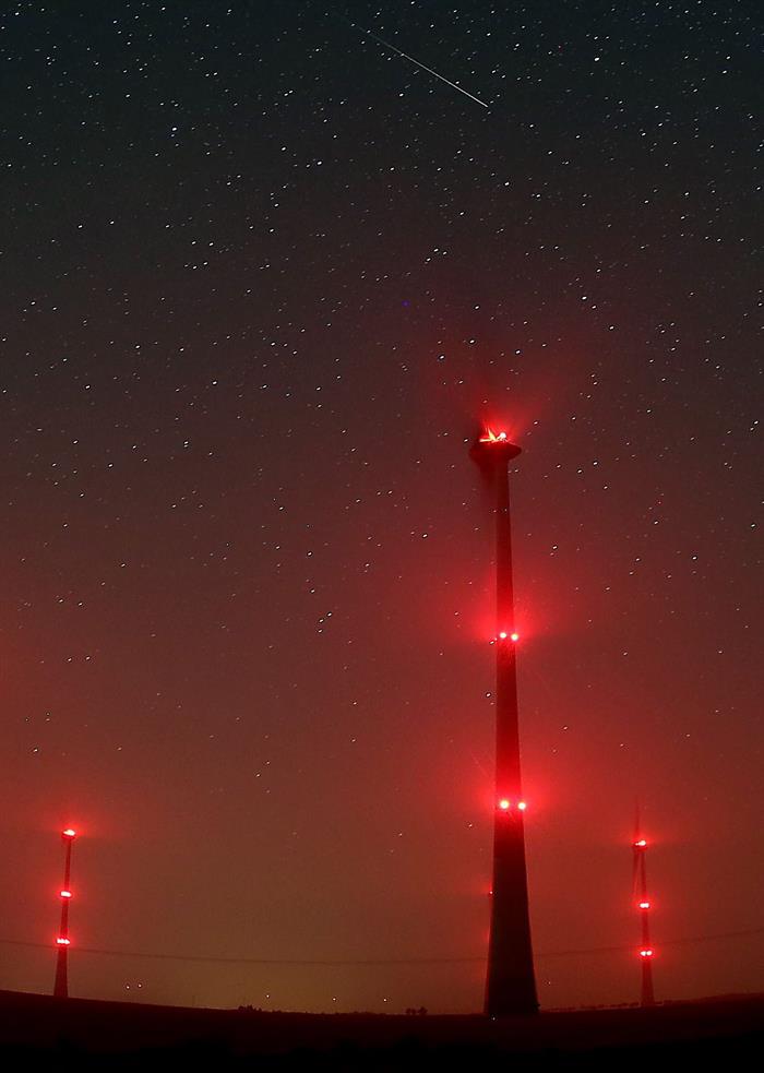 Fotografía con larga exposición que muestra un meteoro cruzando el cielo sobre Halle/Saale (Alemania)