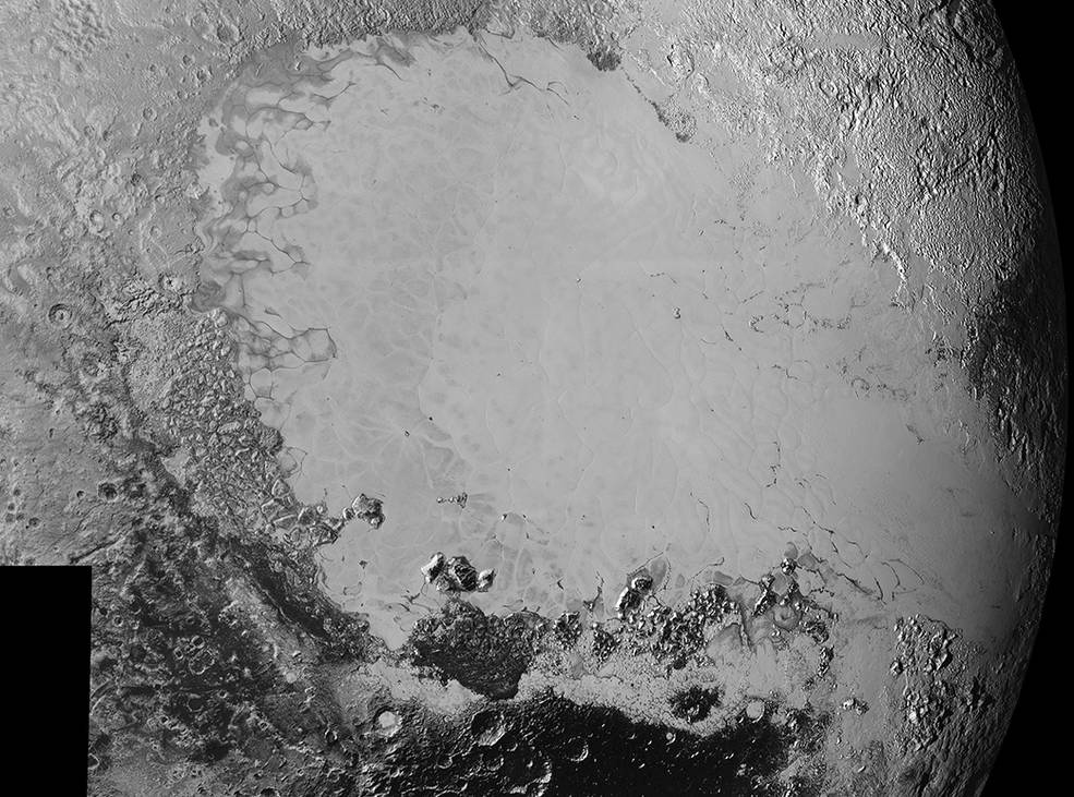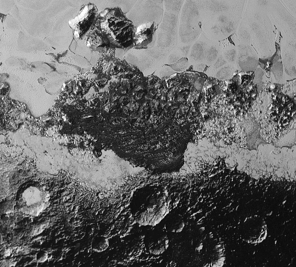 La zona de cráteres llamada Cthulhu y las llanuras heladas de Sputnik Planum.