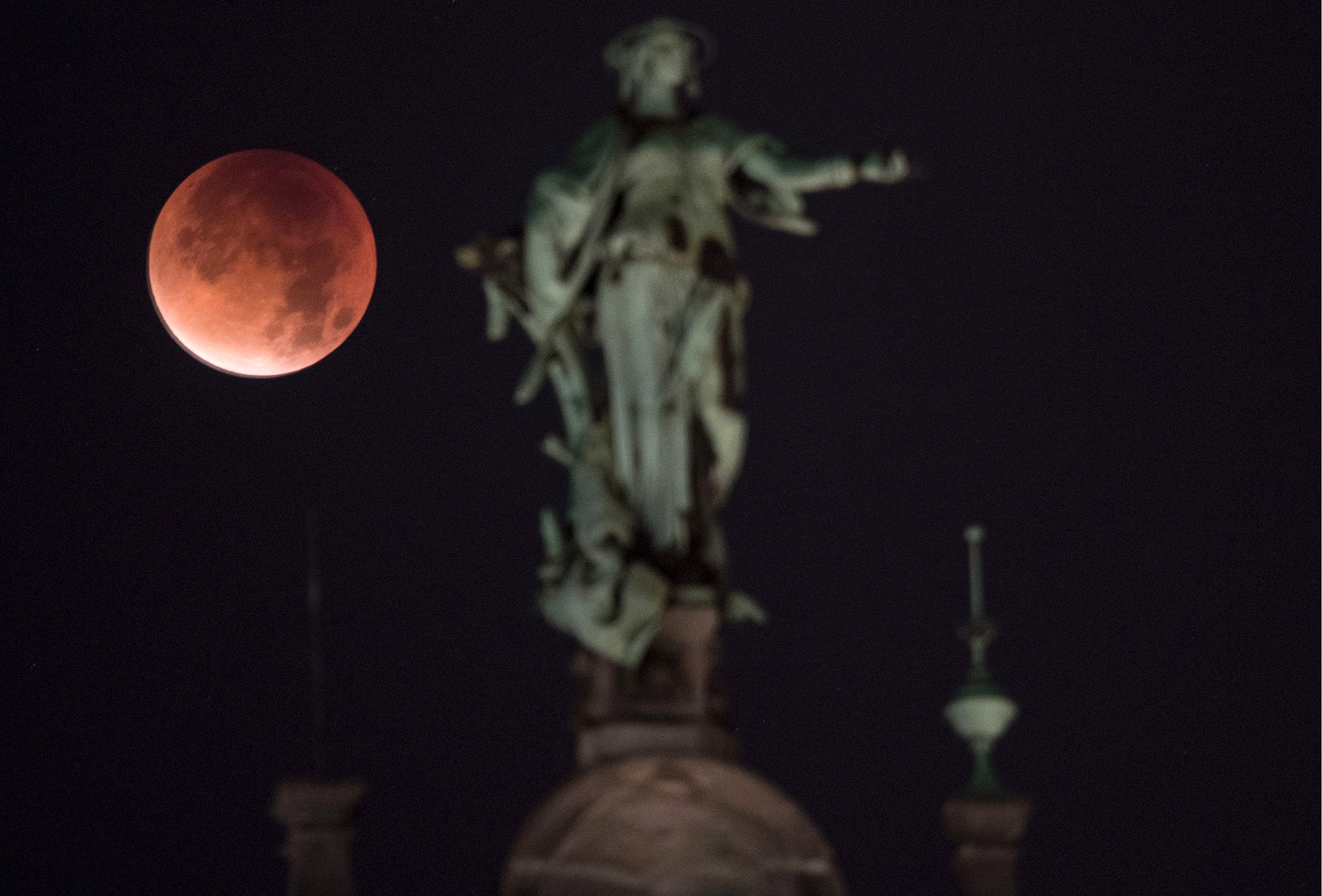 La Luna se ha teñido de rojo en un espectacular eclipse total durante la noche del domingo al lunes, pudiendo ser vista al completo desde varios puntos de la Tierra. El color rojizo es producido por el efecto de la atmósfera, que actúa como filtro, desviando la luz del Sol y filtrando sus componentes azules, dejando pasar sólo la luz roja. Este fenómeno, también llamado luna de sangre, se ha podido ver durante la madrugada de este lunes 28 de septiembre y no se repetirá hasta el año 2033.