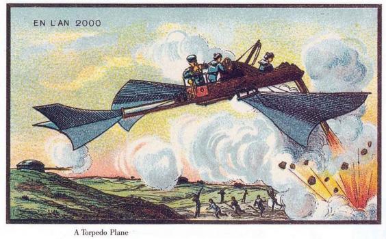 Nuestros cazas y bombarderos son más sofisticados pero en 1900 pensaban que en el siglo XXI las armas de guerra serían así.