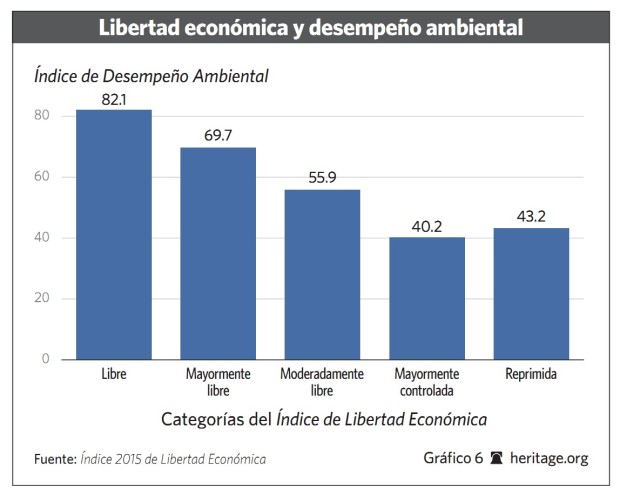 Cruzando los datos del Índice de Libertad Económica de la Fundación Heritage y el Wall Street Journal con las mediciones del Índice de Desempeño Medioambiental de la Universidad de Yale vemos que los países más capitalistas salen mejor parados en materia de conservación.